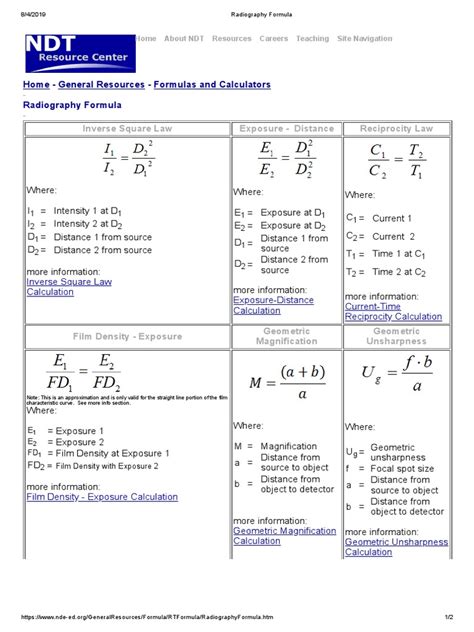 Download industrial radiography formulas PDF